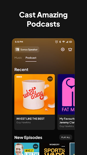 • Listen to music and podcasts stream to your headphones 🎧, speakers, bluetooth devices, Chromecast, TV or wearable devices.