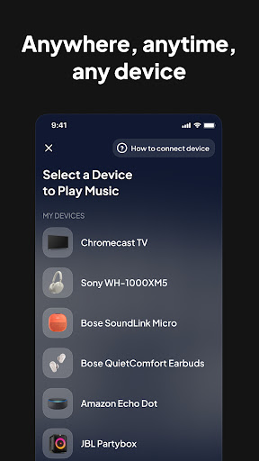 The app works with bosese, sonoses, chromecast, TV and more wearable devices. Create personalized playlists and enjoy the music immediately.