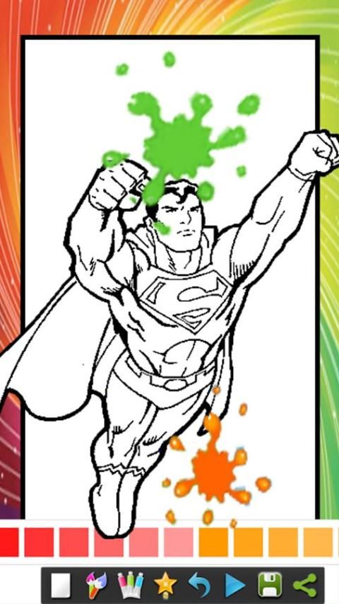 buku mewarnai untuk warna super-hero dirancang dengan antarmuka yang sederhana untuk membantu mereka belajar dan melukis gambar yang menakjubkan menggunakan warna fit dari pemilih warna foto.