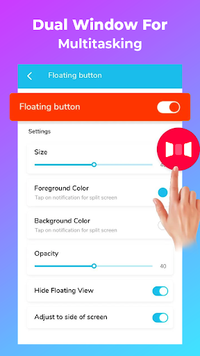 adalah aplikasi fantastis untuk membagi layar ke layar ganda. Setelah membelah layar, Anda dapat menggunakan berbagai aplikasi di kedua layar sekaligus. Anda dapat menambahkan tombol apung pada layar beranda untuk membuka aplikasi dengan cepat. Anda juga dapat mengatur getaran pada opsi split-screen. Aplikasi ini adalah antarmuka yang mudah digunakan. Itu berarti semua orang dapat menggunakan aplikasi ini dengan mudah.