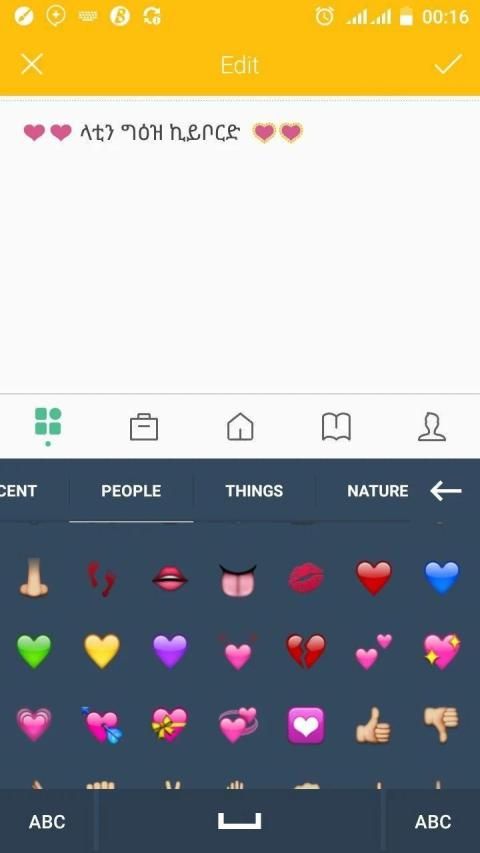 Latinግዕዝ Keyboard is a keyboard intended to make Geez alphabeting writing easy on android mobiles. The keyboard translates Latin alphabets to Geez while you write. For example if you write "selam" it will automatically change in to "ሰላም".