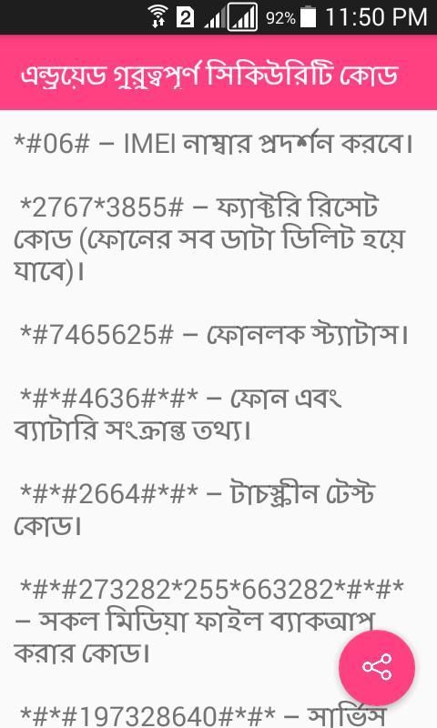 = Semua kode android ponsel android
