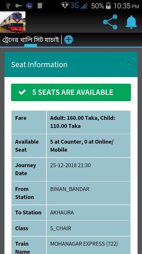 aplikasi ketersediaan kursi kereta api Bangladesh