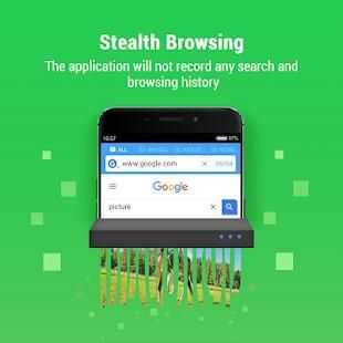 Anda dapat merasa aman untuk browsing atau mencari saat menggunakan aplikasi kita. Aplikasi ini tidak akan merekam setiap pencarian dan browsing sejarah.