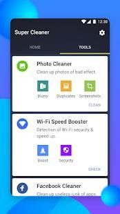 Super Cleaner is a fast, compact and efficient optimization tool for android with Junk File Cleaner, Phone Speed Booster, Battery Saver and Facebook Clean. It is designed to boost your phone speed, free up space, extend battery life and improve phone performance!