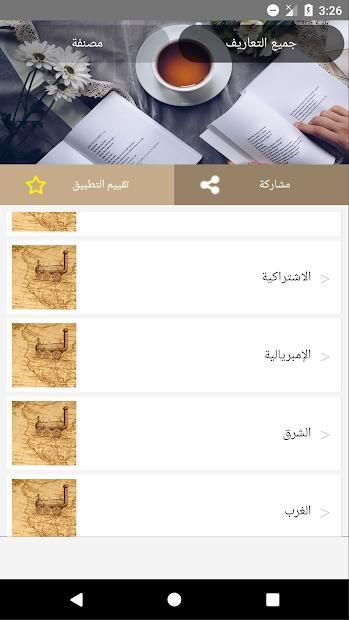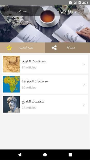 إذا أعجبك تطبيق مصطلحات التاريخ والجغرافيا للسنة الثالثة ثانوي أو أفادك الرجاء إعطاؤه التقييم الذي تظن أنه يستحقه وإعطاؤنا تعليقا محفزا برأيك في التطبيق وإذا كانت لديك أية تعليقات عن نقائص في التطبيق أو كيفية تحسينه الرجاء ذكرها في تعليق أو إرسالها إلى حساب إيميل مطور تطبيق مصطلحات التاريخ والجغرافيا للسنة الثالثة ثانوي الموجود أسفل هذا الوصف.
