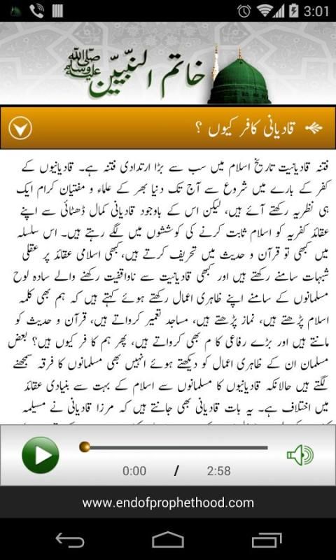 Aplikasi ini akan membantu Anda mengetahui tentang keyakinan dasar Khatm-e-nubuwat dan tentang Qadiani (yang menyebut themselevs 'Ahmadiyah') kultus.