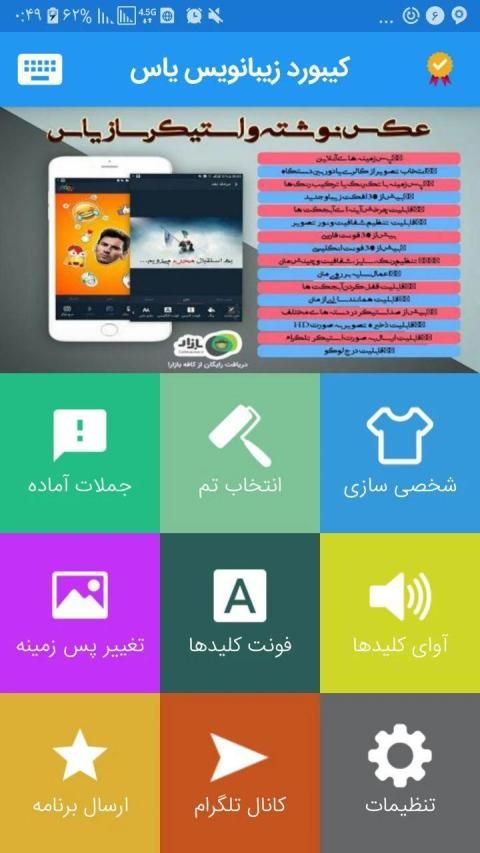 این کیبورد دارای عکس های زمینه مختلف و کیبورد با امکانات هوشمند و فارسی کیبورد