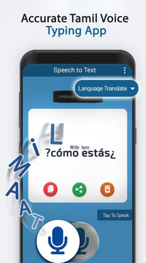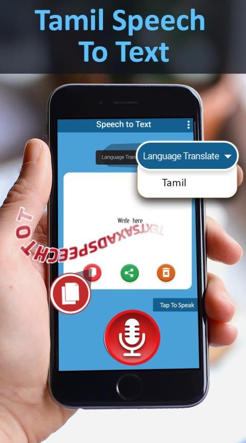 Tamil voice typing keyboard app allows you to type Tamil text through voice typing. It is Tamil voice to text converter in which user only has to speak in Tamil and it will convert the voice text in to Tamil text. Now no need to use typing keyboard any more, just use this audio to text converter app and write text through voice typing. Tamil speak to text converter app will make your life much easier you just have to dictate your text and it will convert it automatically. Tamil voice to text converter app is highly optimized speech to text app that uses voice recognition technology to detect your voice and provide your voice in text form for text, messages or any other social app. Tamil audio to text converter app is the easiest voice typing keyboard to write Tamil text through voice.