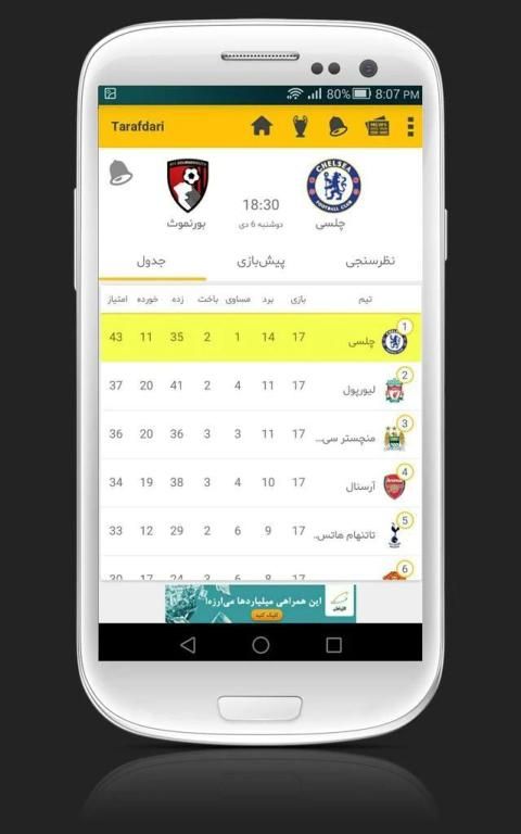 نمایش اطلاعات هر تیم شامل فهرست بازیها، ویدئوها، اخبار، ترکیب تیم و اطلاعات کلی