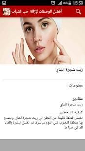 أفضل الوصفات لإزالة حب الشباب هو تطبيق مجاني وبدون أنترنت, يحتوي على مجموعة من الوصفات والطرق الفعالة لإزالة حب الشباب نهائيا