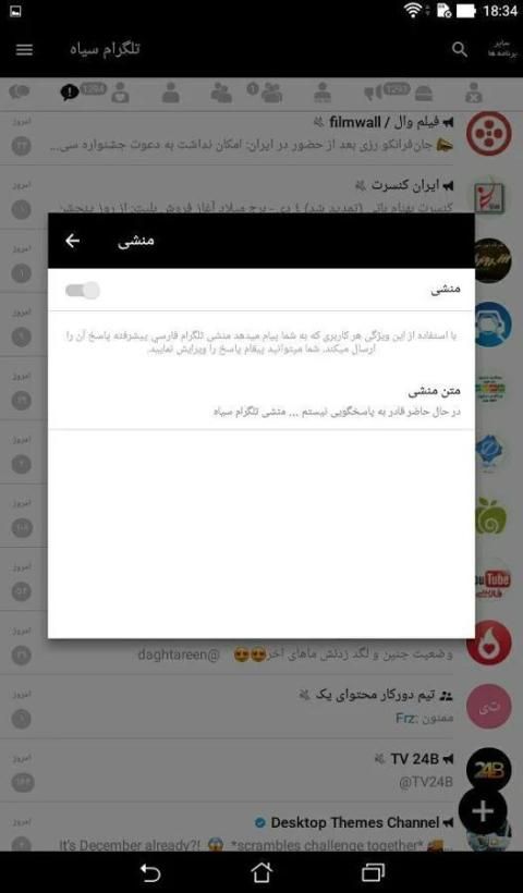 Beberapa fitur yang paling penting dan fungsi Telegram hitam yang unik:
