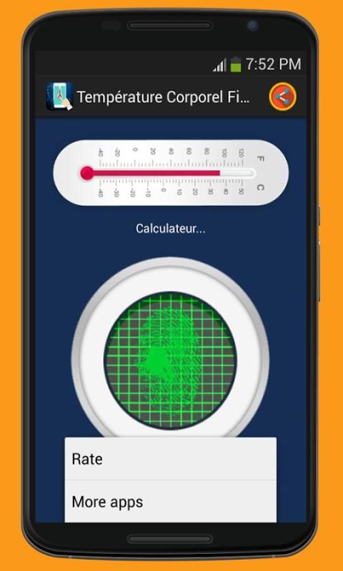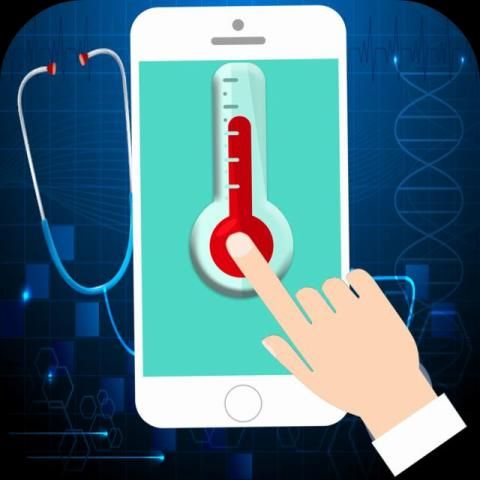 suhu tubuh Demam lelucon aplikasi yang menghitung termometer suhu tubuh Anda menggunakan scanner jari.