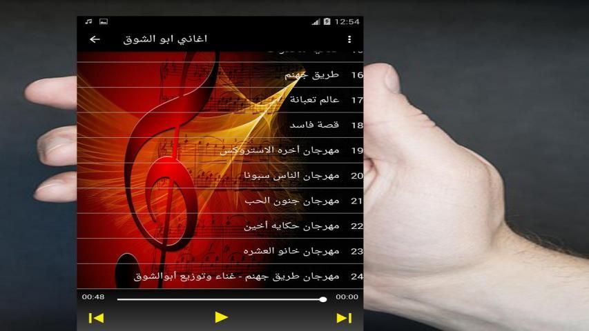 فاذا كنت من عشاق الاستماع الى اغاني عربية رومانسية او اغاني عربية منوعة او اغاني من احدى الدول مثلا أغاني عربية عراقية اواغاني منوعات خليجية على سبيل المثال اغاني عربية بدون انترنت واغاني ردح و اغاني دبكات عراقية فأن تطبيق اغاني مهرجانات ابو الشوق بدون نت الجديد سيلبى طلبك فى الاستمتاع باجمل الاغاني وما كاد المرء يستمتع بهذه الاغاني العربية حتى يسمع صوت البومات أغاني مهرجانات ابو الشوق بدون نت وبوجود هذا الصوت العذب يكون التطبيق قد قدم المطلوب منه من اغاني الطرب الجميل والاصيل من اغاني زمان لتطرب مسامعنا بصوت افضل أغاني مهرجانات ابو الشوق بدون نت