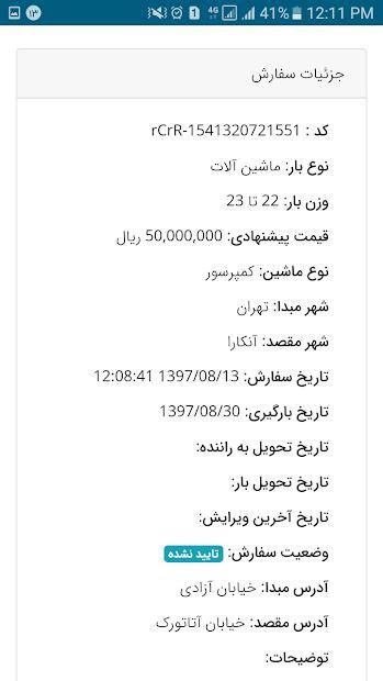 صاحبان بار و شرکتهای حمل و نقل، میتوانند بارهای خود را ثبت و با بهترین قیمت پیشنهادی از سوی رانندگان بار خود را حمل نمایند.