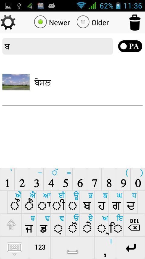 Ambil & menyimpan catatan dengan gambar di punjabi menggunakan 2 keyboard punjabi khusus.
