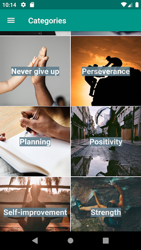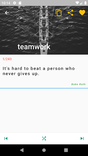 Mungkin aplikasi termudah untuk digunakan. Pilih kategori yang ingin Anda jelajahi dari halaman pertama. Kemudian pilih dari daftar item apa pun untuk detail lebih lanjut. Untuk Favorit Teks, Kutipan, fakta, klik pada ikon bintang di panel atas.