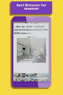 Browser cepat untuk servises Craigslist diciptakan sebagai solusi mobile untuk situs Craigslist.com hanya untuk meningkatkan pengalaman pengguna, aplikasi berperilaku seperti browser normal dan tidak mengumpulkan informasi apapun dalam.