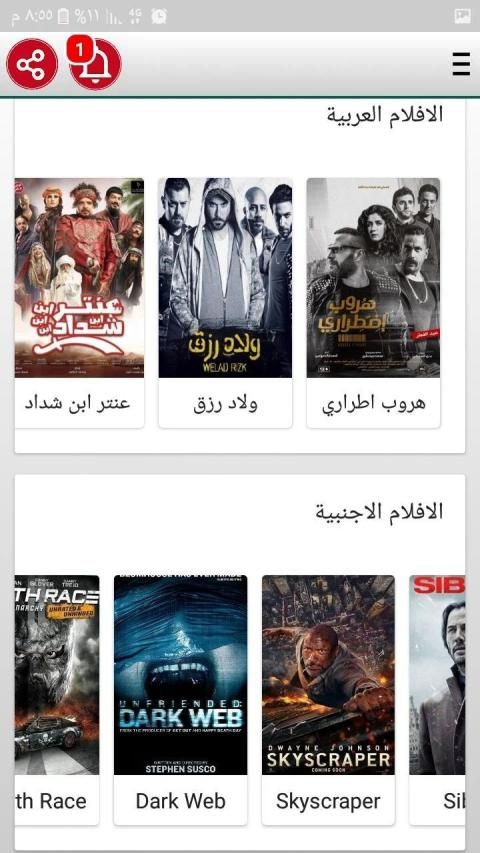 كما يمكنكم مشاهدة افلام من داخل التطبيق في قسم الافلام