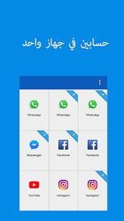 نوفر لكم تطبيق متعدد الحسابات يساعدك في حسابين واتس اب في جهاز واحد و حسابين فايسبوك والمزيد من التطبيقات الأخرى .