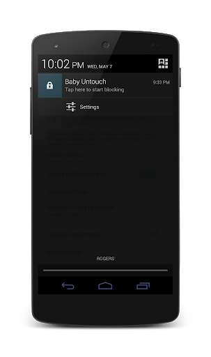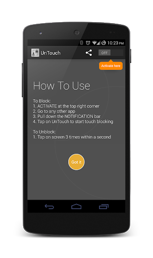 3. Pull down the notification bar and click on "UnTouch" to start touch blocking