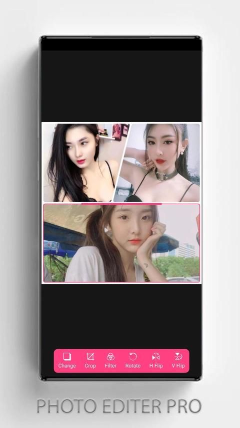The FREE Photo Editor Pro application integrates the function of creating a collage to be able to combine multiple photos into a frame with beautiful and diverse frames for easy selection.