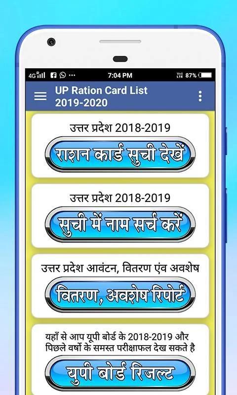 डाउनलोड कीजिये उत्तर प्रदेश राशन कार्ड एप्प को और देखिये बी पी एल, अन्तोदय, पात्र गृहस्थी की नयी सूची, राशन कार्ड का विवरण (Detil), के कार्ड मुखिया का नाम, कोटेदार का विवरण, खाद्यान मूल्य, फसलो का नया लगत मूल्य, राशन कार्ड सम्बन्धी नयी योजनाये, 2018-2019 और भी बहुत कुछ .....