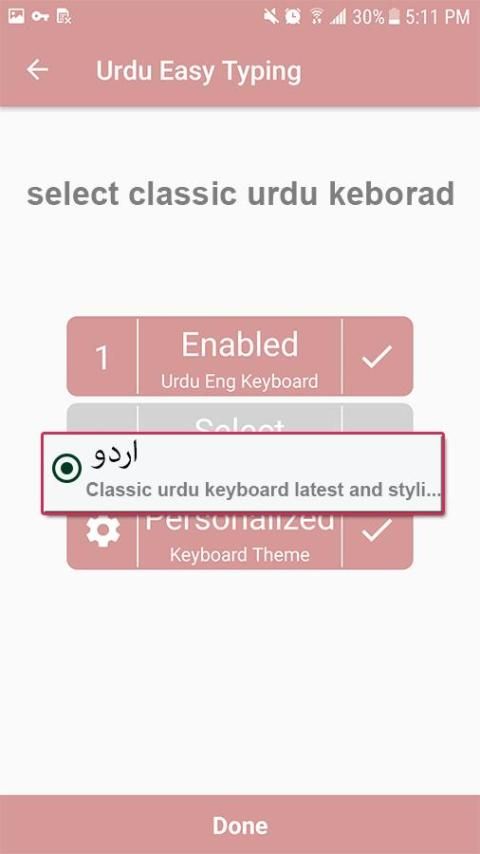 Setelah mengaktifkan terbaik Urdu Mudah Mengetik menetapkan metode input antara keyboard Urdu dan keyboard perangkat default.