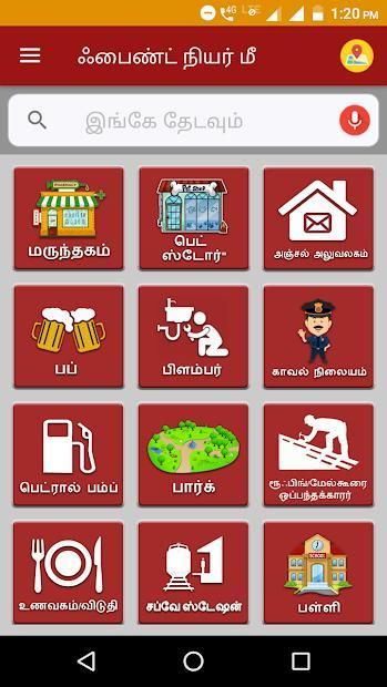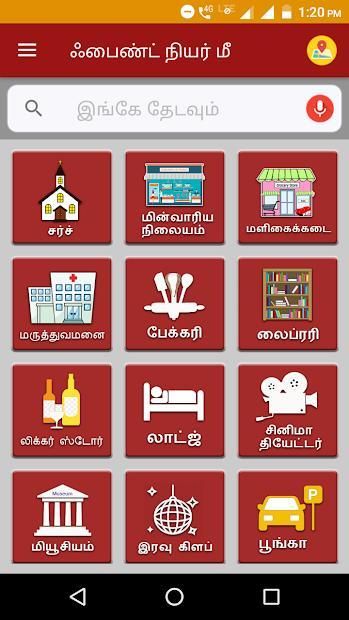 செயலி விவரம்: நமக்கு அருகில் உள்ள இடங்களைப் பற்றிய அனைத்து விவரங்களையும் வழங்குகிறது “எனக்கு அருகில் உள்ள இடங்கள்” செயலி. இங்கே உங்கள் தேவைகளுக்கு ஏற்ப பல்வேறு இடங்கள் பட்டியலிடப்பட்டுள்ளன. இவை உங்கள் தேவையை முழுவதுமாக பூர்த்தி செய்யும் என்றாலும் உங்களுக்கு தேவையானவற்றை நீங்கள் சர்ச் பாரில் தட்டச்சு செய்து தேடிக்கொள்ள முடியும். இங்கே அளிக்கப்பட்டுள்ள மொழிகள் தேர்வு மூலம் உங்கள் மொழியிலேயே நீங்கள் விரும்பும் இடத்தை தேடிக் கண்டறியலாம். மேலும் அவற்றை விருப்பப் பட்டியலிலும் சேர்க்கலாம். உங்களுக்கு அருகில் உள்ள இடங்களைப்பற்றிய முழுமையான விவரங்கள் அளிக்கப் பட்டுள்ளன.