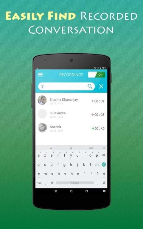 Sekarang jangan ragu untuk menerima panggilan penting Anda dalam kemacetan lalu lintas dan juga tidak perlu kenangan Anda Panggilan telepon Call Recorder di Ponsel akan menghapus sakit kepala Anda. Ini akan merekam dan menyimpan panggilan Anda dan Anda dapat mendengarkan mereka nanti pada saat Anda memiliki waktu luang. Anda juga dapat mengatur catatan panggilan Anda. Call Recorder aplikasi ini sederhana yang memiliki kemampuan untuk mengaktifkan atau menonaktifkan merekam panggilan, mencatat semua panggilan telepon Anda, memutar atau menghentikan rekaman audio dengan sentuhan pada item, menghapus item direkam. Aplikasi ini mencatat penerimaan terbatas dan panggilan forwarding.