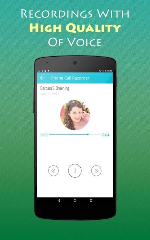 Telepon Call Recorder di ponsel sangat mudah digunakan: hanya membuat panggilan dan akan disimpan. Hal ini memungkinkan Anda untuk menyimpan panggilan telepon Anda ingin menyimpan, memilih masuk atau keluar panggilan telepon untuk merekam dan memilih memanggil Anda ingin menyimpan. perekam panggilan otomatis ini memungkinkan Anda secara otomatis merekam isi panggilan di ponsel Anda dan mendengarkan mereka setiap saat. Aplikasi ini tidak hanya akan merekam tiba dan forwarding panggilan tetapi juga memberikan Anda pilihan untuk merekam panggilan ke depan. Anda tidak memiliki batasan pada jumlah rekaman Anda dapat menyimpan atau bagaimana lagi mereka bisa dalam ukuran.