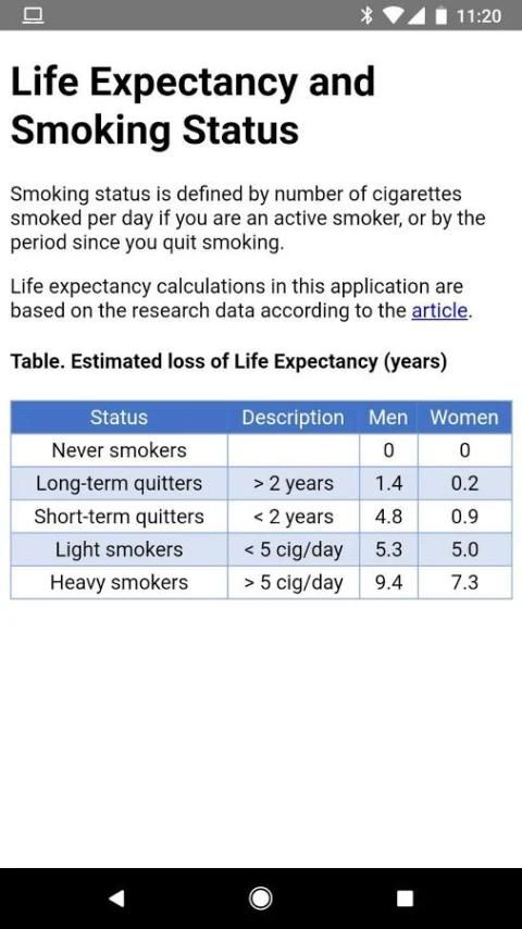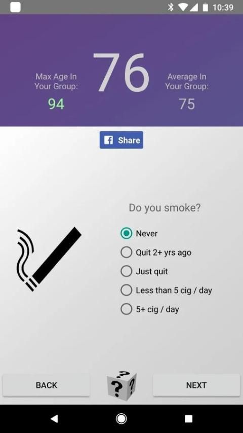 Aplikasi kami akan membantu Anda meningkatkan harapan hidup Anda. Kami hasil yang dikumpulkan dari berbagai penelitian ilmiah untuk datang dengan formula tentang bagaimana kebiasaan dan faktor-faktor lain tertentu mempengaruhi rentang hidup Anda.