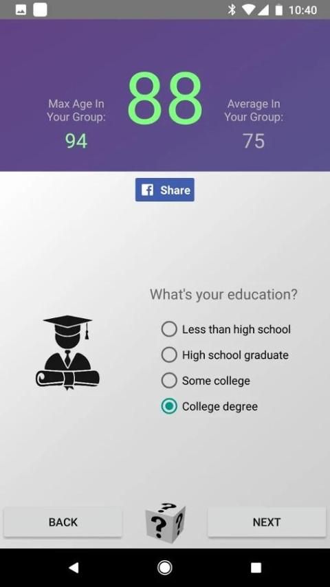 Untuk waktu singkat semua pertanyaan bebas biaya, tidak ada pembelian dalam aplikasi yang dibutuhkan untuk menyelesaikan kuesioner penuh dan belajar tentang rentang hidup Anda!