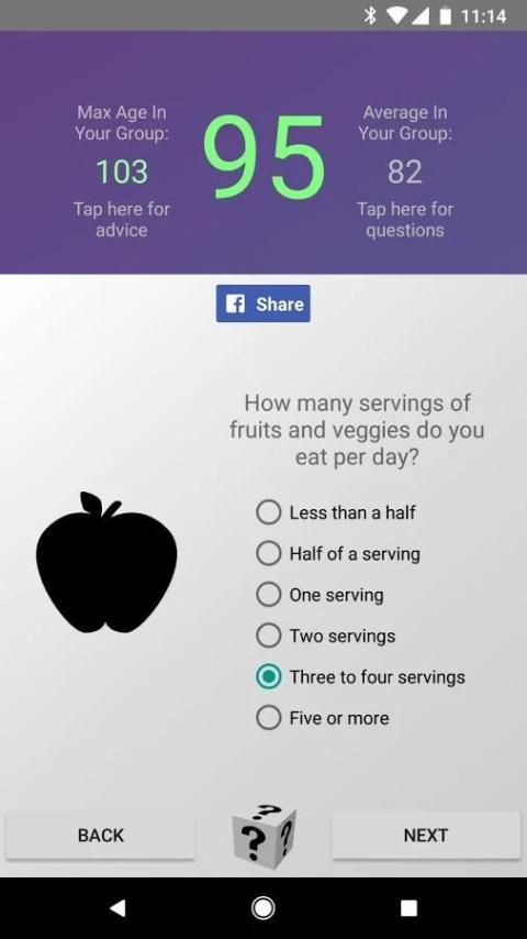 Menggunakan aplikasi ini sederhana: hanya menjawab beberapa pertanyaan tentang diri Anda dan kebiasaan Anda sehari-hari (jawaban tidak pernah meninggalkan ponsel Anda dan tidak berbagi dengan siapa pun). Kami akan menunjukkan berapa banyak, rata-rata, jawaban mempengaruhi harapan hidup. Misalnya, makan banyak daging merah atau olahan menurun rentang hidup secara signifikan, Anda akan melihat berapa tahun Anda bisa mendapatkan dengan berolahraga lebih sering.