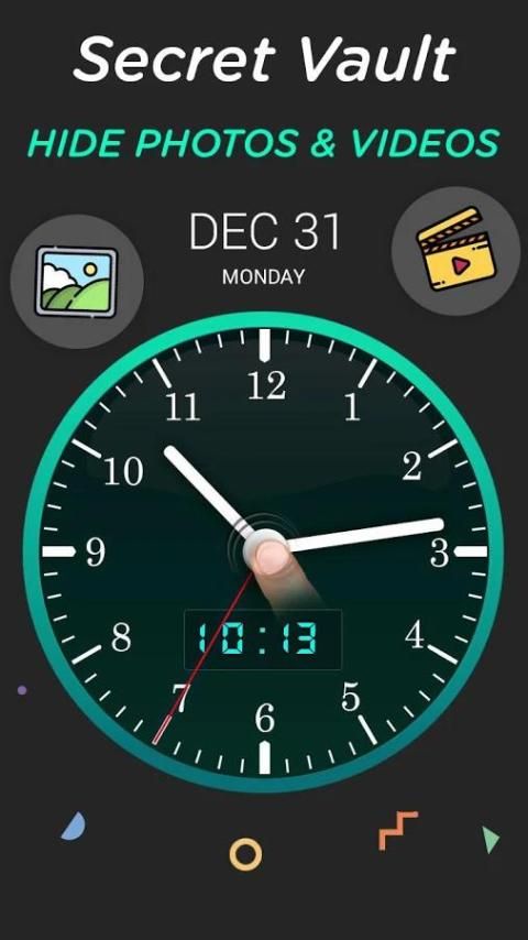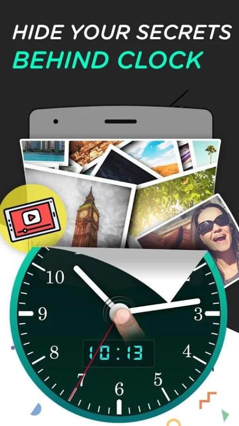 Sembunyikan Foto, Video Locker aplikasi & foto penyembunyi Galeri Vault aplikasi yang memungkinkan Anda menyembunyikan gambar dan kunci gambar pribadi dan album penyembunyi foto atau video rahasia di balik jam rahasia. foto kubah terlihat seperti jam sederhana dengan mata telanjang namun memiliki kubah galeri rahasia di balik itu.