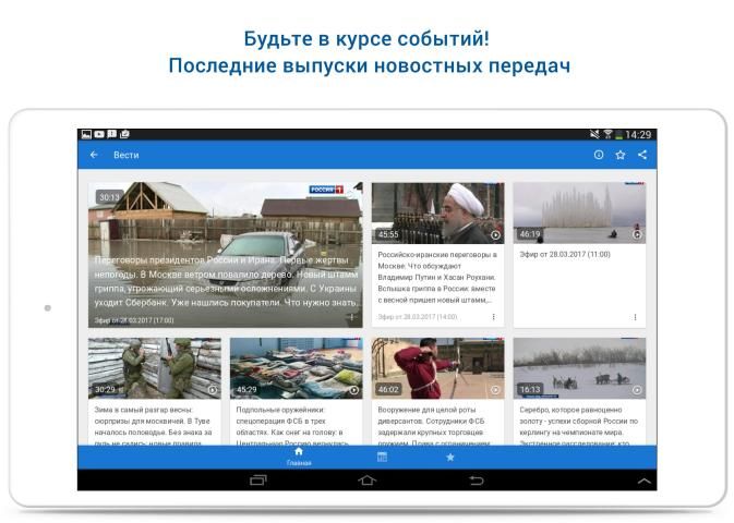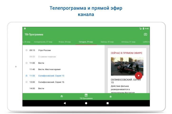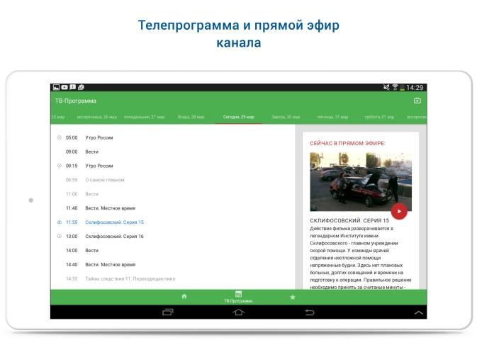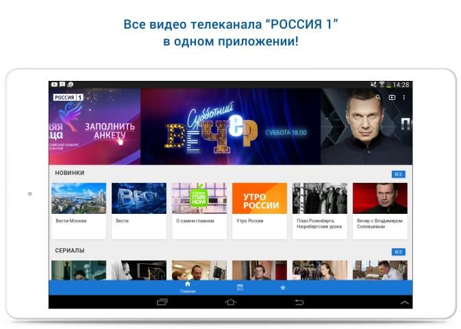 "Rusia 1" - aplikasi resmi dari Negara Televisi dan Radio All-Rusia untuk perangkat mobile yang menjalankan Android.