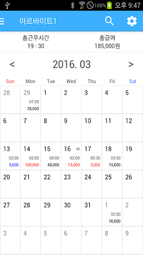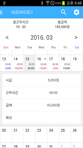 Paruh waktu Pekerjaan Diary adalah aplikasi yang secara otomatis menghitung gaji dengan memasukkan jam kerja pada kalender.