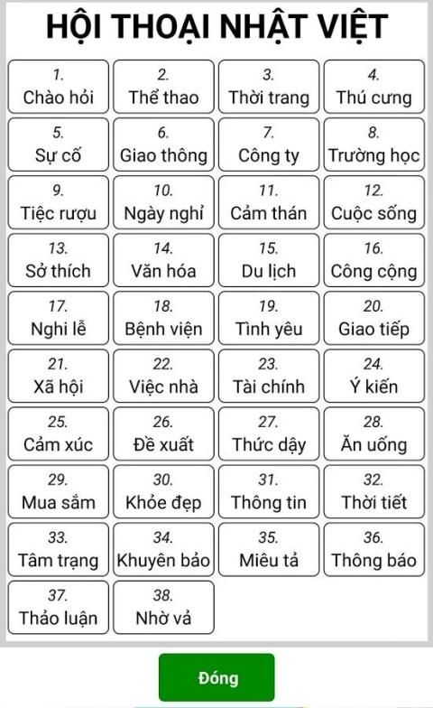 Mendengarkan Jepang pola kalimat percakapan Vietnam dikategorikan berdasarkan topik.