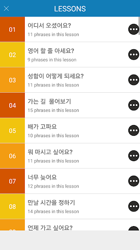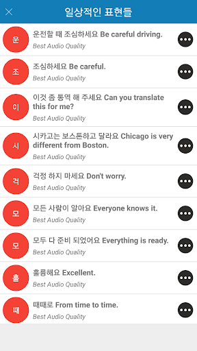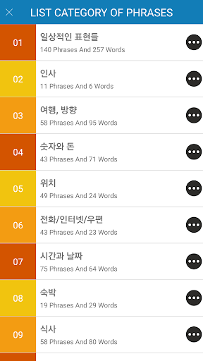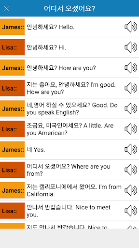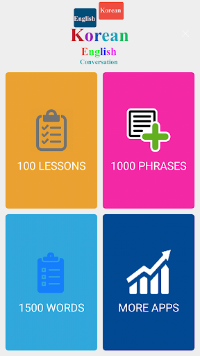 Korean English Conversation includes 100 lessons, 1500 vocabularies and 1000 phrases for your daily conversation.