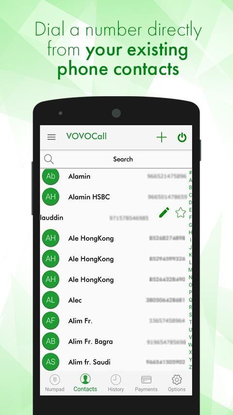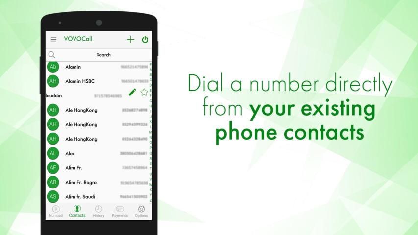 ♥ Panggil nomor telepon langsung dari kontak telepon Anda yang ada.