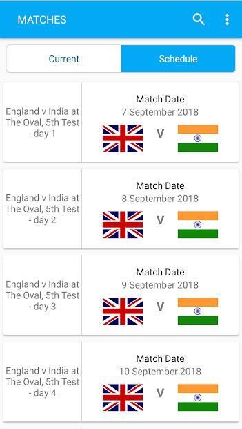 • Live cricket scores of all formats of the game