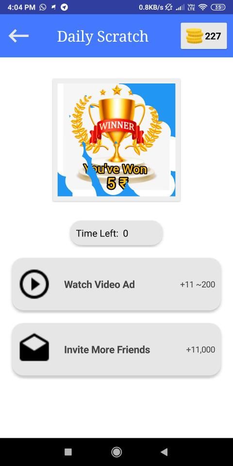 Lucky Spin Win Game through Dapatkan koin harian tanpa batas. Lucky Spin Win Game serupa dengan memainkan permainan lain tetapi perbedaan inti dari permainan ini adalah bahwa di sini tidak ada yang longgar, hanya situasi menang & menang untuk semua orang & kartu Gosok untuk mendapatkan uang. Pengguna akan menonton video dan mendapatkan uang, dapat dapatkan uang tunai gratis, isi ulang gratis, kupon diskon gratis, dan banyak lagi.