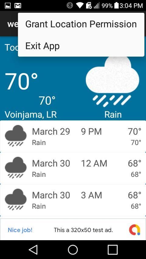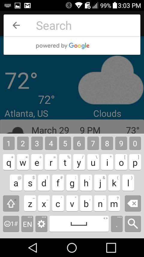 Aplikasi cuaca ini menyediakan perkiraan lima hari untuk lokasi pengguna saat ini dengan interval tiga jam. Pengguna juga dapat memperoleh perkiraan untuk kota-kota besar dan paling terpencil dengan mengetik dan memilih kota yang Anda inginkan dari daftar saran.