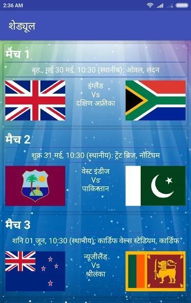 ✓ विश्व कप 2019 अद्यतन अनुसूचित (नई सुधारित फिक्स्चर)