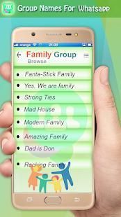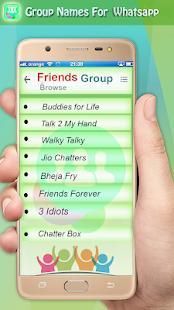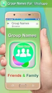 Frequently people create groups for communication, either for entertainment or any other purpose. If you are going to create group then choose the group chat name with whats group name app. Get the ultimate group names ides and copy the names through what group name app. group names app provides you the different group names list for friends, family , cool, funny, cousins. Create the unlimited groups and get the stunning groups name for free with names for whatsapp. The whats group name app renders the funny group names for your social media groups. Amaze your friends and choose the most creative group name for your new created group. Change the existing groups and let the fun begin with whats group names app.