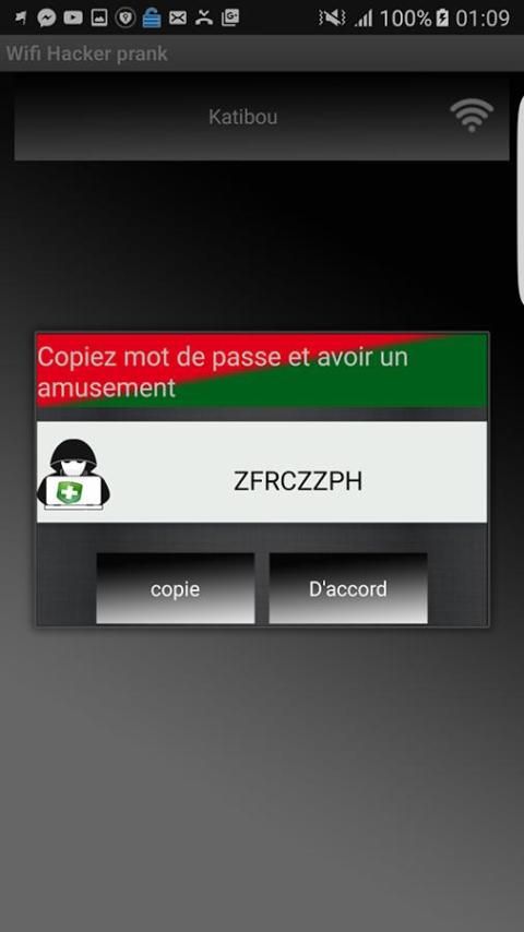 Membuat bersenang-senang dengan teman dan keluarga. Terlihat seperti seorang hacker. Aplikasi ini akan menampilkan semua jaringan wifi tersedia dan akan klik di atasnya, nyata seperti pengolahan akan mulai dan pada akhirnya sandi akan ditampilkan. Anda dapat menggunakannya untuk mengelabui teman Anda bahwa Anda dapat hack ke jaringan wifi pribadi mereka.