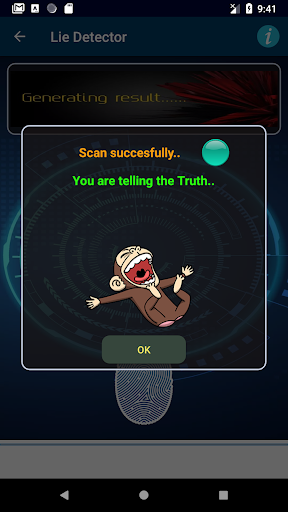 is a funny game which is a prank that simulates to detect whether you are telling the truth or lying. You can preset the result to prank your friends! Press the volume key when scanning. (volume for truth, volume- for lie). Let your friends press his finger on the fingerprint scanner and then the Lie detector app will simulate to scan and calculate the result, true or false. Of course it is a simulated app used to prank your friends. It is so interesting.
