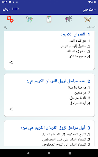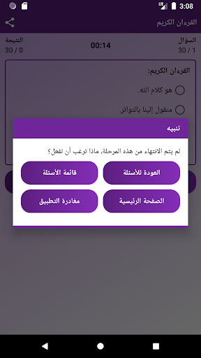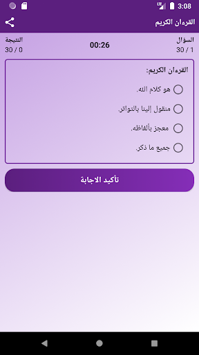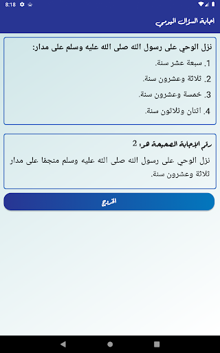 Pengguna dalam berbagai pertanyaan harus berhasil melewati tahap pertama untuk melamar tahap berikutnya, dan ia harus menjawab setiap pertanyaan dalam periode maksimum 30 detik, yang membuat aplikasi menyenangkan dan menarik.Setelah mengkonfirmasi jawaban untuk setiap pertanyaan atau akhir waktu, aplikasi akan menampilkan jawaban yang benar dengan detail tambahan yang ditujukan untuk mengkomunikasikan informasi kepada pengguna dengan cara yang lancar dan tidak langsung. Dan bacaan (memerlukan net).> Aplikasi menyenangkan dan cocok untuk segala usia dan tingkatan, karena tidak memerlukan koneksi ke internet, dan tidak berisi iklan atau iklan yang mengganggu. Alat widget untuk mengakses konten aplikasi dari luar aplikasi segera. Segera pertanyaan multi-opsi dikirim Anda secara otomatis sekali sehari, dengan kemampuan untuk berbagi atau memasukkan aplikasi melalui pemberitahuan. Puisi.