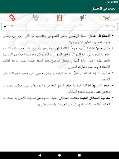 تم معالجة الخلل الفني وعمل تحسينات واضافات للمظهر العام كالألوان والخطوط والتنسيق - يمكنك الآن الاستماع لصوت مخرج الحرف بالنقر على صورة المخرج ضمن (مخارج وألقاب الحروف) داخل (منارة الإتقان) - يمكنك الآن الرجوع لآخر موضوع كنت تطلع عليه ضمن (منارة الاتقان) دون الحاجة للبحث عنه - معالجة الخلل الفني في الإصدارات الحديثة