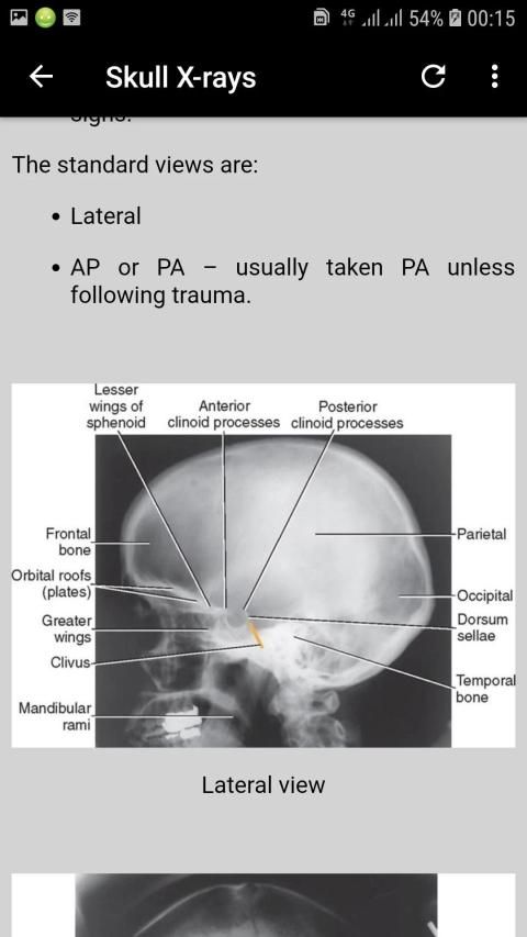 Interpretasi tengkorak, sinus paranasal, orbit, dada, perut, saluran urogenital (pelvis), dan x-ray muskuloskeletal